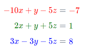 [[3,4,-3],[2,5,3],[-1,6,4]][[x],[y],[z]]=[[1833],[5152],[5574]]