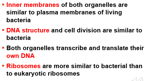 a. Inner membranes of both organelles are similar to plasma membranes of bacteria