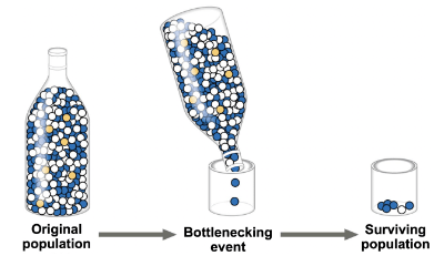 A volcano erupts on island killing 95% of the snail population. The surviving snails, by chance, have a higher frequency of bright colored shells than the original population. The volcano erupting is an example of