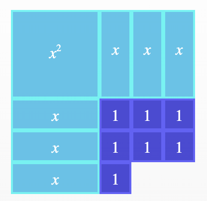 Completing the square, how how you write the vertex form represented by the following tiles?