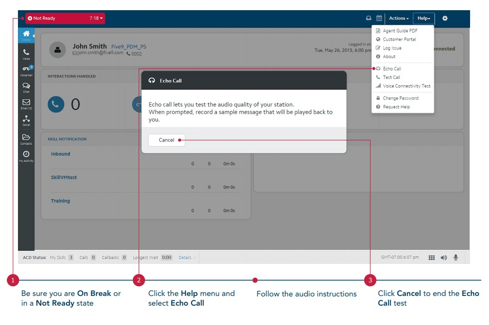 If proper audio connection is established when signing into your Five9 station, this is what you will hear.