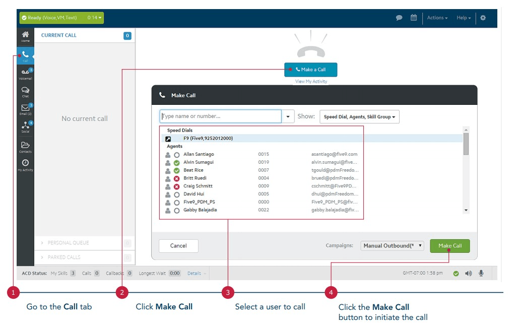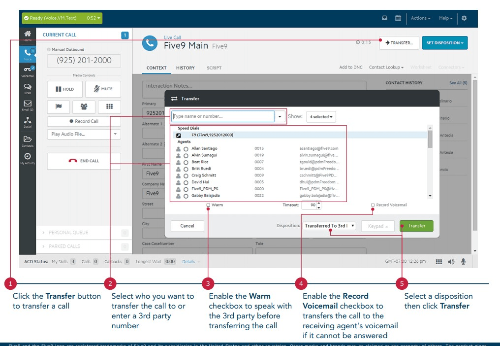 True or Fales: You cannot call other agents on Five9