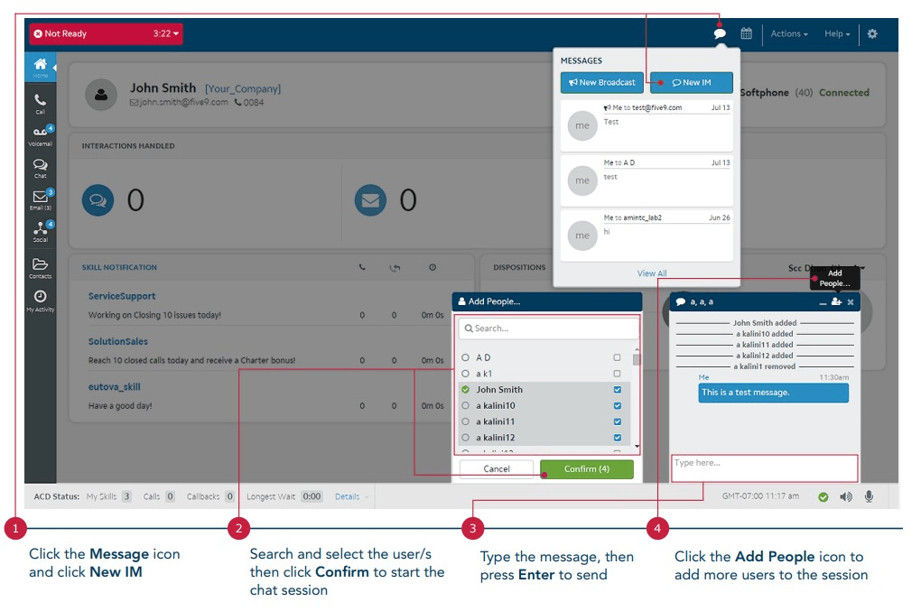True or False: You can only message one person at a time in Five9