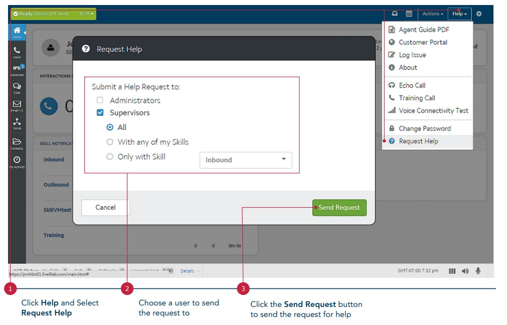 You use this function to directly contact your supervisor, team leader, or another agent.