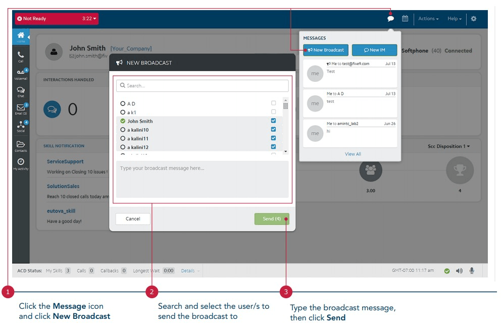 What is send a BROADCAST MESSAGE?