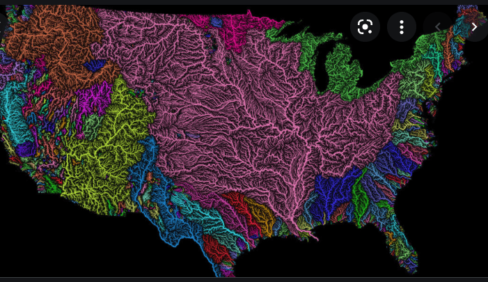 Rain that falls in the light pink region can end up in either the Atlantic or Pacific Ocean! It just depends on which part of the pink watershed you are in!