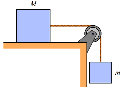 Assume mass M sits on a frictionless table, what is the net force acting on M?