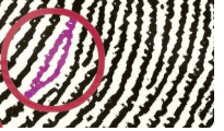 Bifurcation, ending ridge, short ridge, island, core, delta.