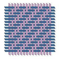Alternating warp and weft threads, firm and wears  well.