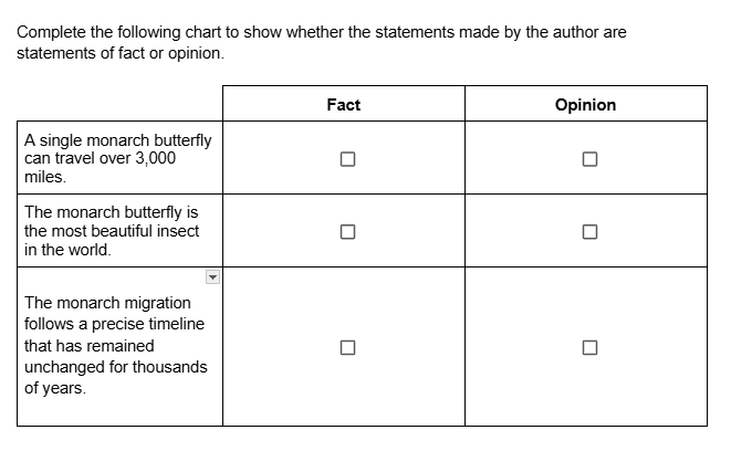 What is B. The monarch butterflies follow the same migration pattern every year. They begin their journey in early fall and arrive to their destination in late fall.