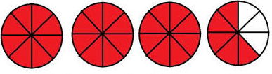 How many fourths (1/4) in 9 wholes?