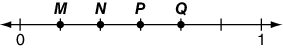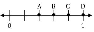 On the number line below, which point represents the fraction 3/5 ?