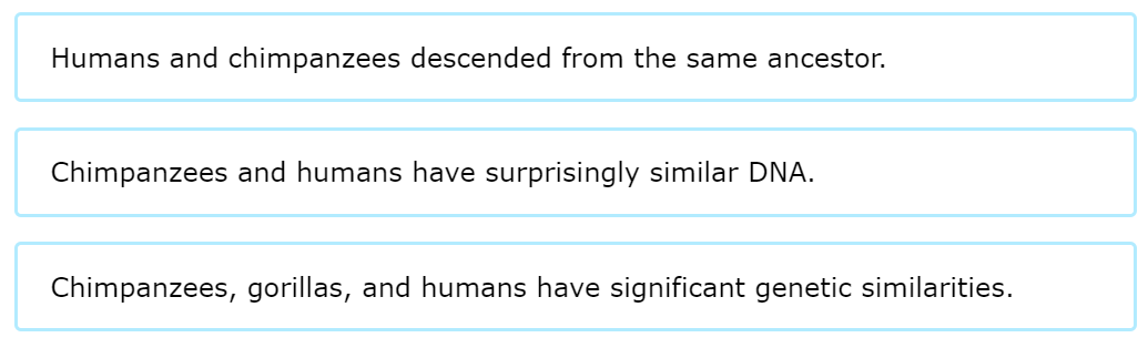 B- Chimpanzees and humans have surprisingly similar DNA.