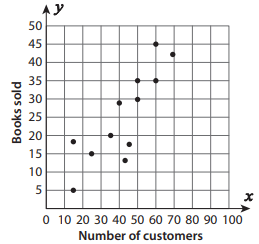 Lincoln Bookstore records the number of customers who visit each day and the number of books sold. The scatter plot shows the data.