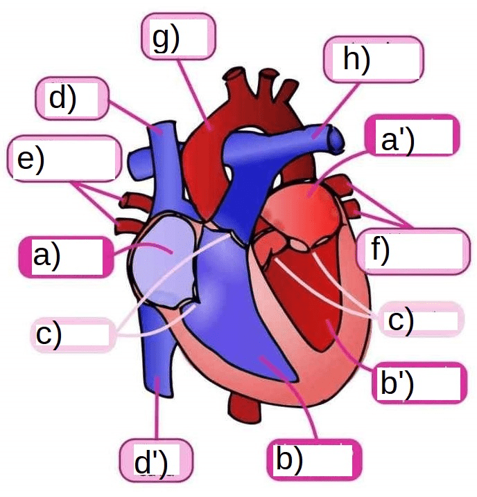 Observa la imagen e identifica las siguientes estructuras del corazón: