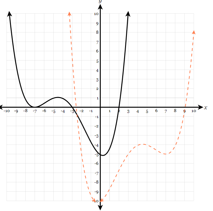 The graph of f(x) is the solid black graph. What transformation does the dotted graph represent?