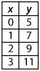 Which table of values can be represented by the function y=2x+5  ?