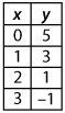 The relationship between one set of variables is modeled by y= -2x+8 .