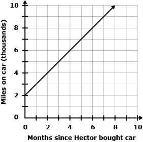 Hector purchased a used car and the graph below shows the number of miles on the car since he bought it.  Which of these is a correct statement based on the graph?