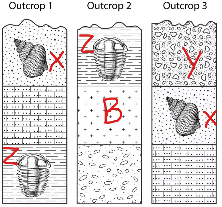 2) Additionally, rock layer X is younger than rock layer Z because it is higher in the rock record than Z.
