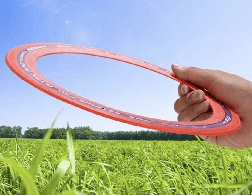 A hollow rubber loop that can glide well over 1000 feet if thrown correctly.