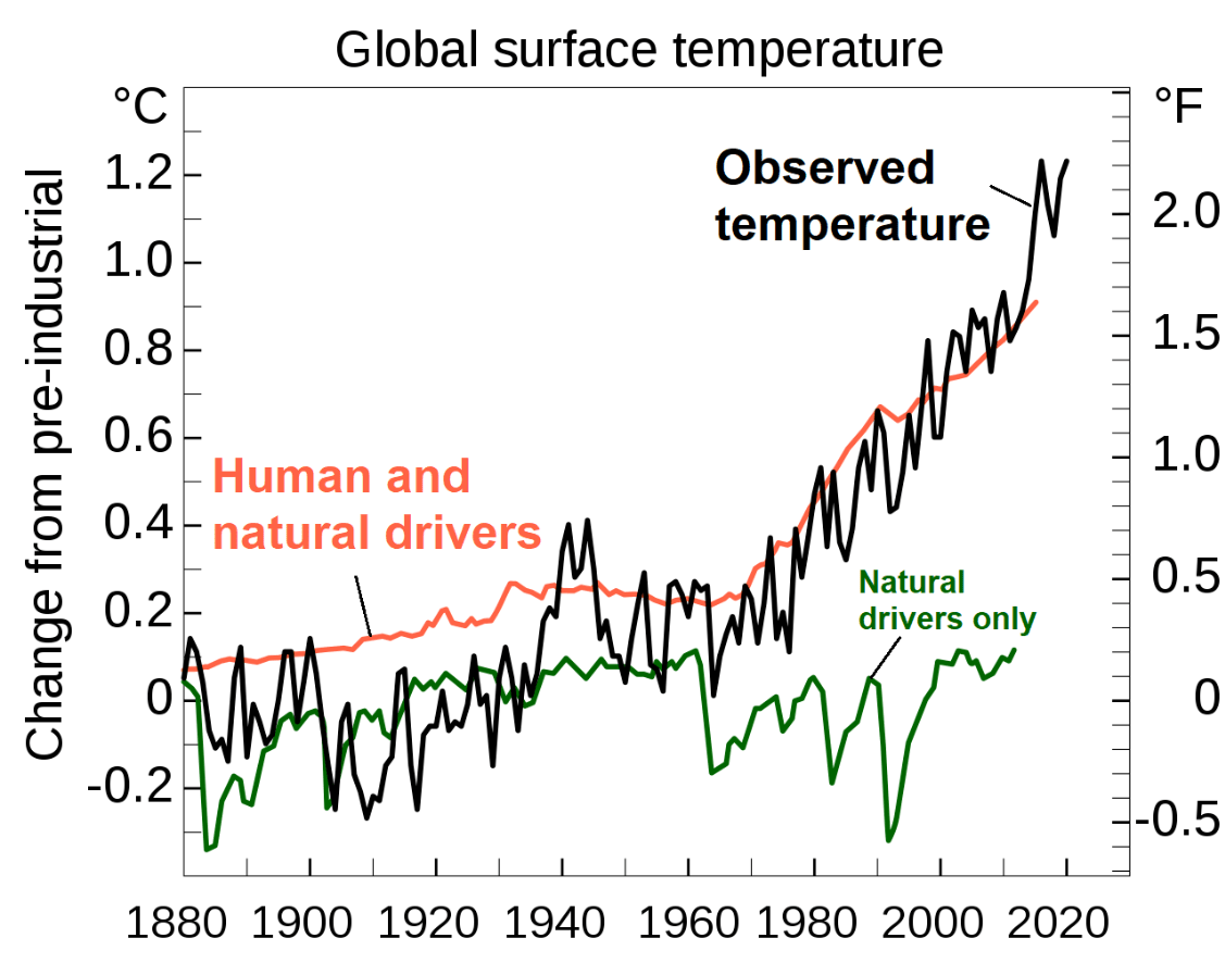 According to the provided graph, what is most responsible for increases in global temperatures?