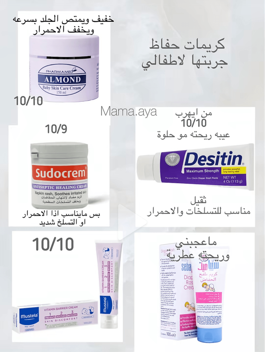 اذكر ٣ براندات لكريمات الحفاضات