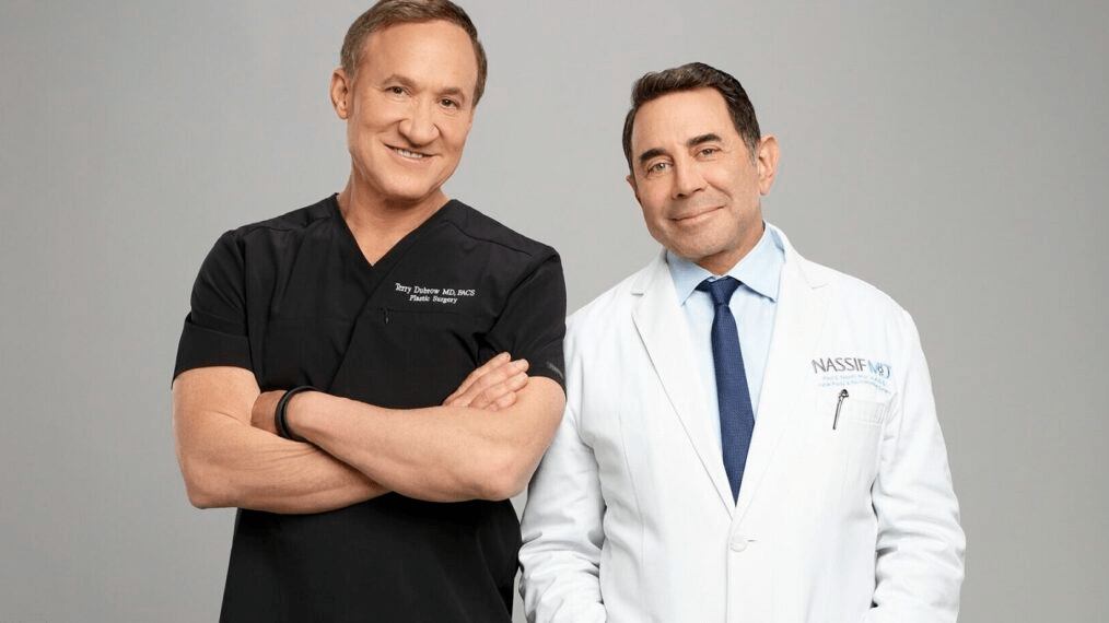 In the Real Housewives of Orange County, one character is married to a real life plastic surgeon. Who is he and what is own show called?