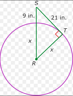 Solve for x which is the radius of the circle.