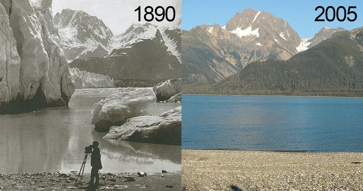 What is currently causing glaciers around the world to melt, shrink and recede?