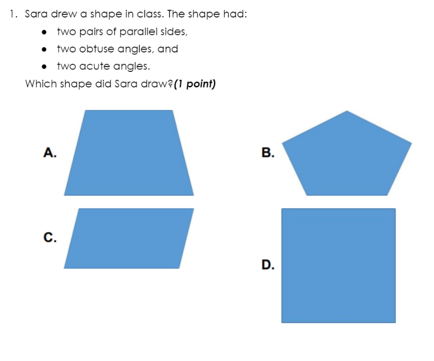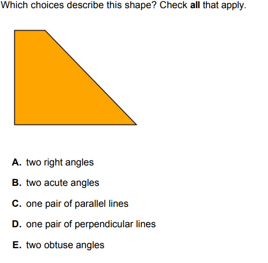 rectangle, parallelogram, rhombus, square, trapezoid