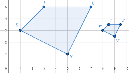 If B(3, -4) is dilated by a scale factor of 1.5, where is B'?