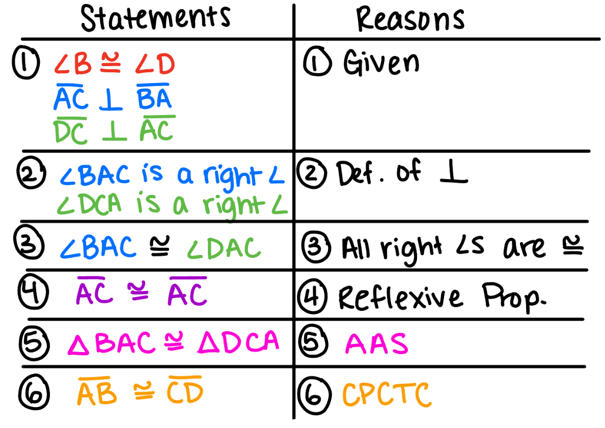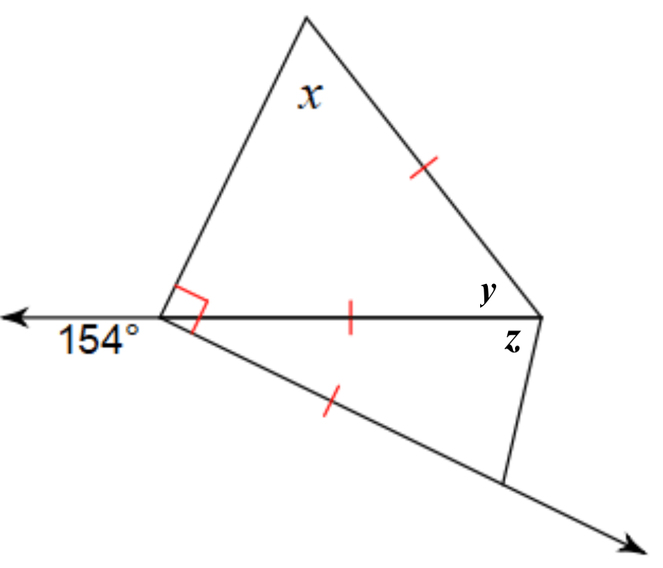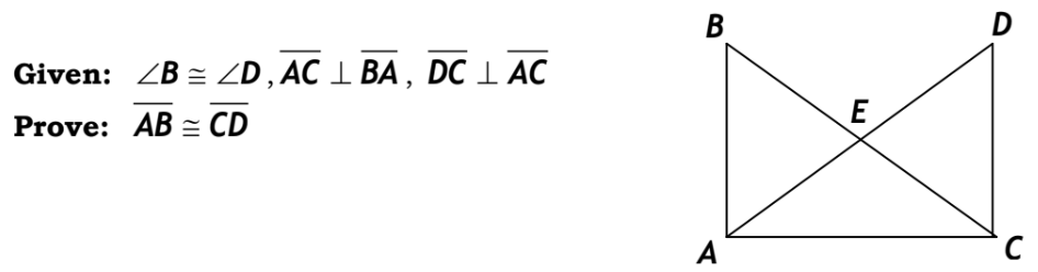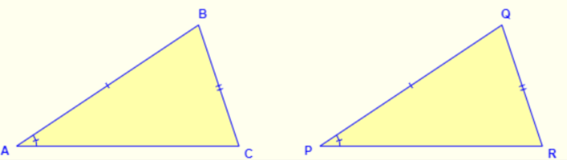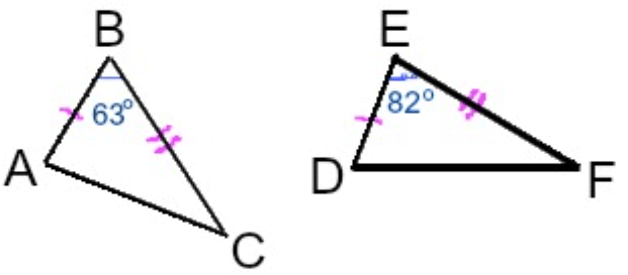 There are two triangles, each with a right angle. The sides across from the right angles are congruent, and one of the other pairs of sides adjacent to the right angle are congruent.