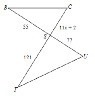 The similar triangles and postulate or theorem used to prove their similarity in the graphic
