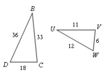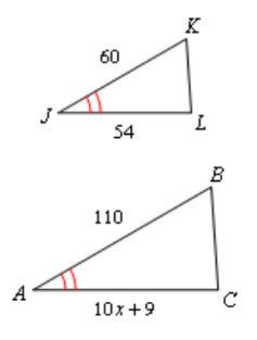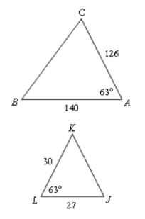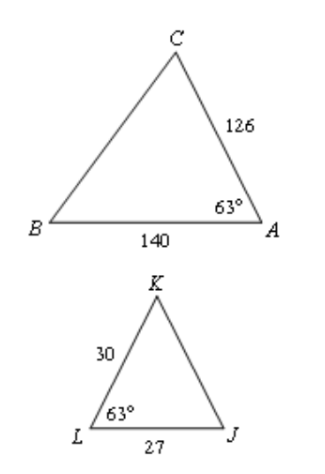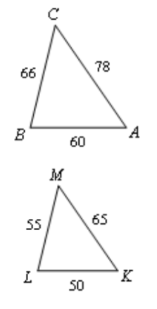 (Angle order in the triangles can be different as long as the respective angles correlate Ex. A=K, B=L, & C=M)