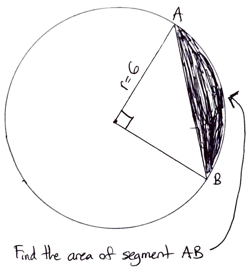 Sector AB has area 50.  Triangle AOB has an area of 40.  What is the area of the segment left over?