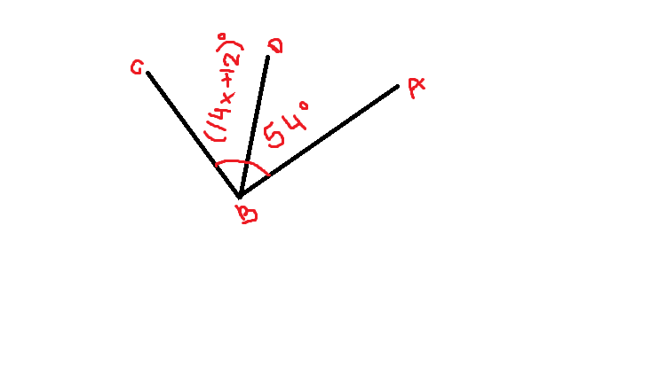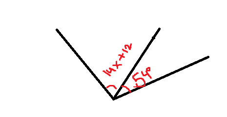 Jonathan is making a roof and he is trying to figure out the angle of where the roof needs to go. One side of the roof is (14x+12) and the second side is 54°. Find x.