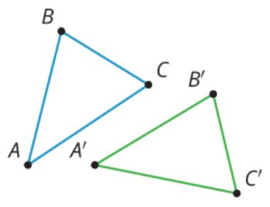 The sequence of rigid transformations that takes figure ABC to A'B'C'