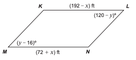In rhombus JKLM, JK = 3x + 9 meters and KL = 11x − 7 meters. What is the perimeter of the rhombus?