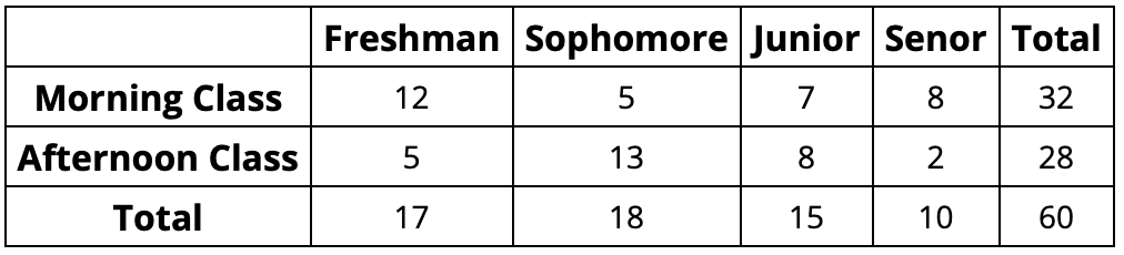 If you selected a student at random, what is the probability that they are a senior AND in the afternoon class?