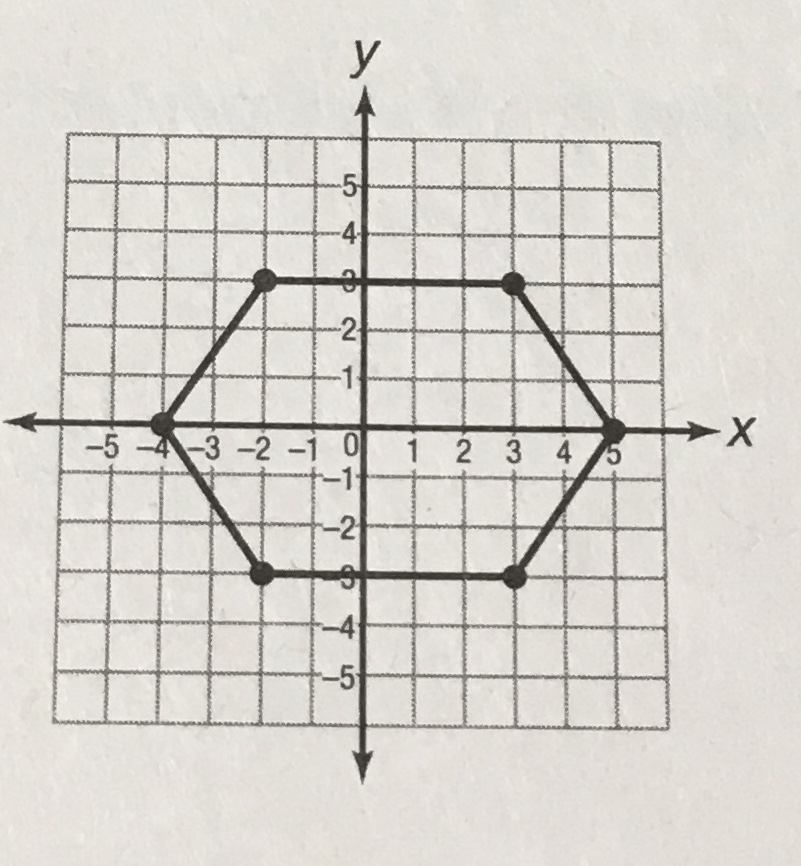 Alyssa drew a polygon on a coordinate plane with vertices at (4,0), (2,3), (2, -3), (-4, -3), (-4, 3), (-5,0). What does Alyssa's polygon look like?