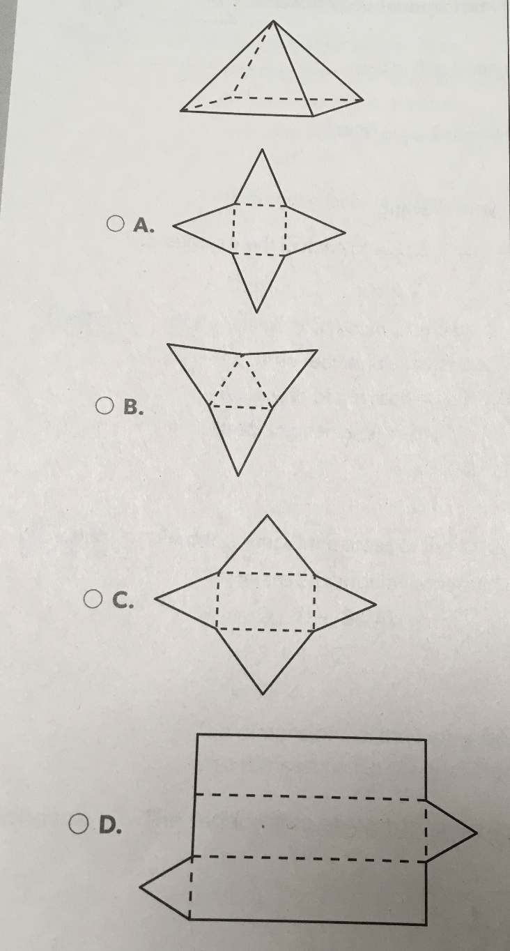 Which of the following is the net for the three-dimensional figure shown below?