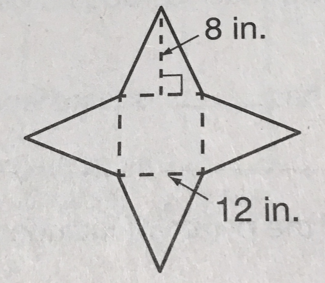 Whitlie is painting the surface area of a wooden box in the shape of a square pyramid. The net for the box is shown below. How much paint will she need to cover the outside of the wooden box.
