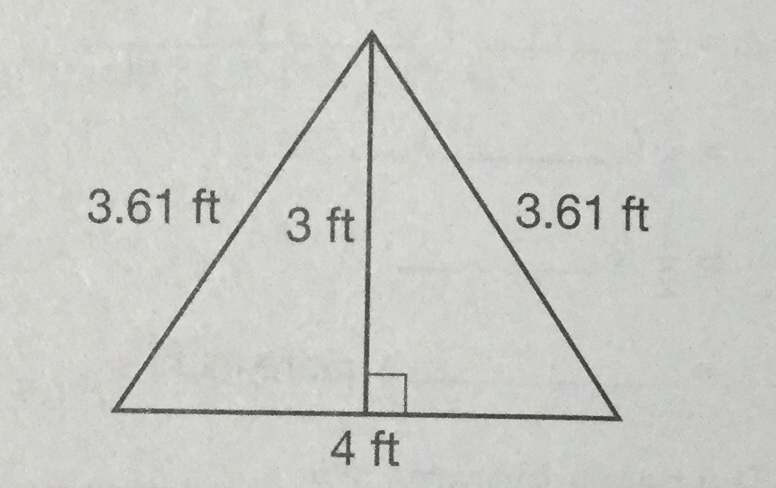 When finding the area of this triangle, which dimension represents the height of the triangle?