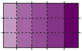 This rectangle is partitioned into ___ rows and ___ columns.