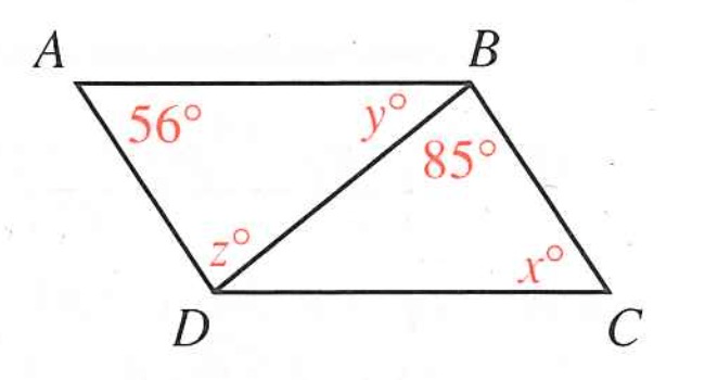Given ABCD is a parallelogram, compute the tuple (x,y,z).