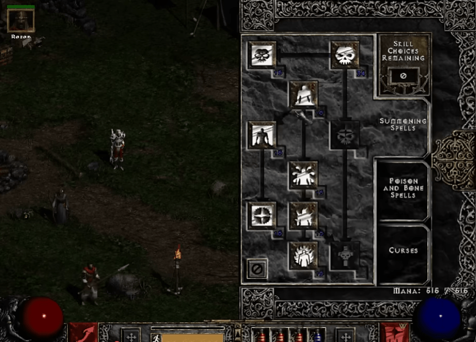 Hvussu eita tey trý skill trees hja Necromancer í Diablo 2?