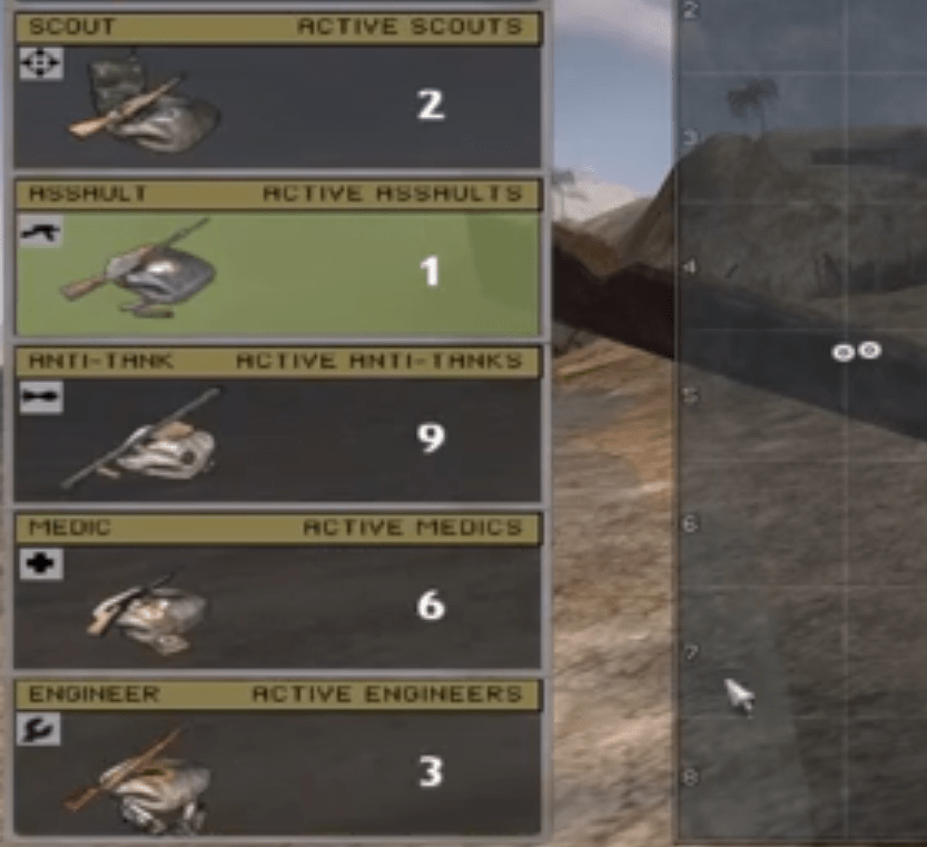 Scout, assault, anti-tank, medic og engineer