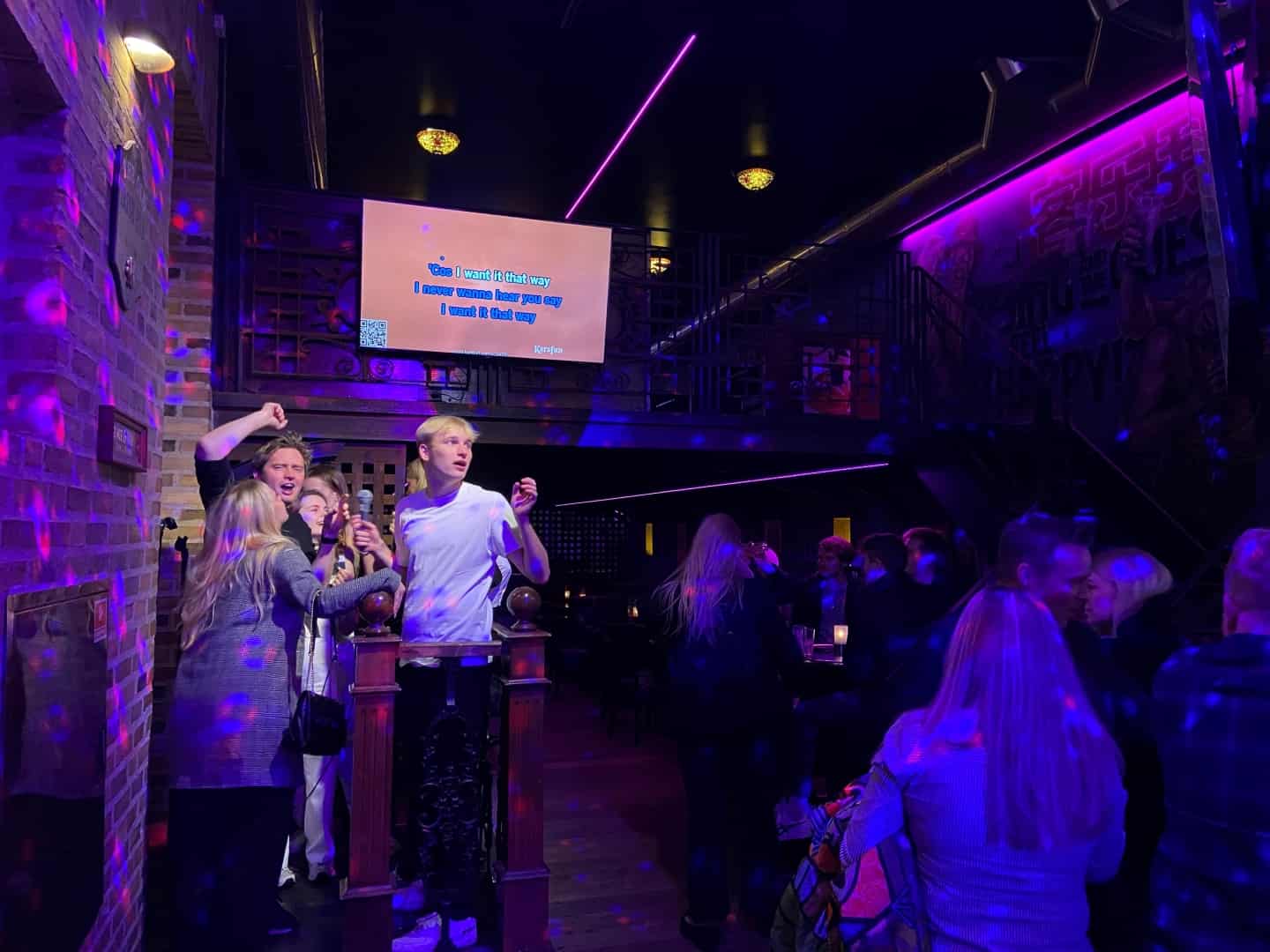 Hvilken farve lys er der i karaoke baren ved Old irish i københavn?