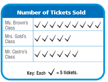 5. HOW MANY MORE tickets were sold by Ms. Brown's class than Mr. Castro's class?